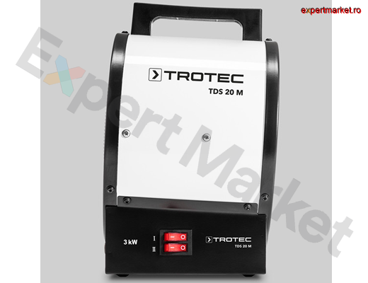 TDS 20M este un incalzitor electric monofazat cu doua trepte de incalizre 1.5 kW respectiv 3 kW avand un registru ceramic PTC în loc de liţă convenţională. Model sigur, robust şi silenţios, fiind uşor transportabil şi utilizabil. Aeroterma TROTEC TDS20M poate fi folosita in camere fara ventilatie pentru a nu consuma oxigenul din incapere, degajand caldura uscata (lipsita de umiditate).